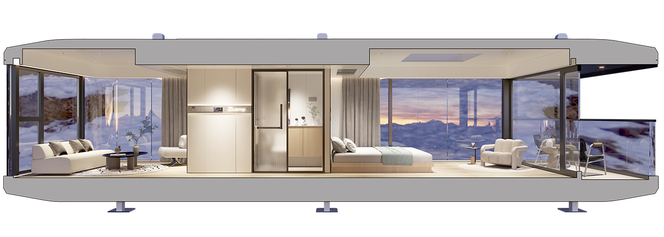 Internal and external aviation aluminum alloy panels, Class A fire-proof, fluorocarbon paint coating, anti-corrosion, anti-rust and anti-oxidation。Independent bathroom in the tail, in the middle of the double bar to distinguish the living room/kitchen and bedroom, 7 series of the king of cost performance, low investment, fast profit.