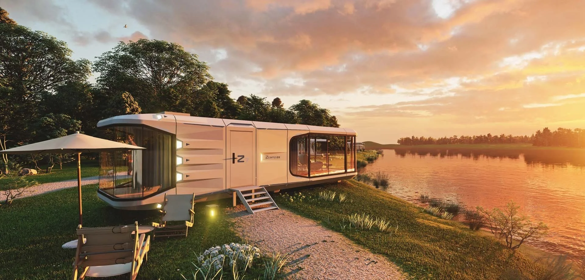 R7 prefab house has been the most popular and best-selling product of Zcamp. The width of the 2023 version has been upgraded to 3.2m. The interior design adopts the classic standard king bed, separating wet and dry areas in the bathroom, spacious washbasin, and luxurious balcony.