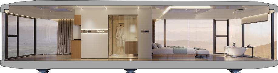 The width of the Z7 has been upgraded to 3.3m, which makes the interior layout cozier. The floor plan of bedroom/ bathroom/ living room has become a classic design in the high-end camping accommodation industry.